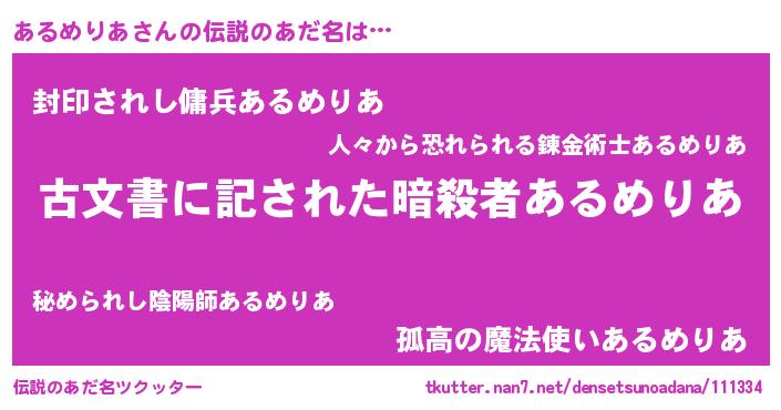 | 意味不明あだ名 | 『永久保存あるめりあ』 |