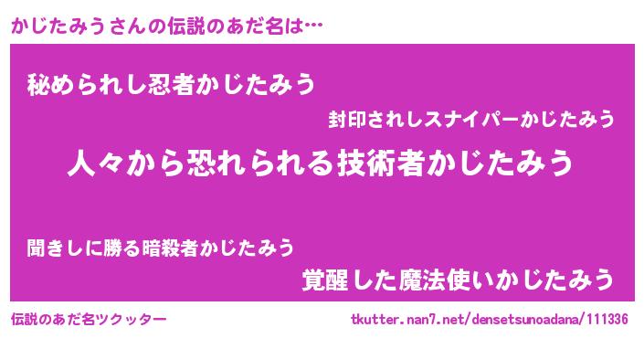 | 男性向けラノベタイトル風あだ名 | 『魔弾の王とかじたみう』 |