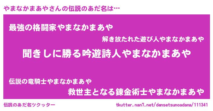 | 男性向けラノベタイトル風あだ名 | 『ヤマナカマアヤスレイヤー』 |