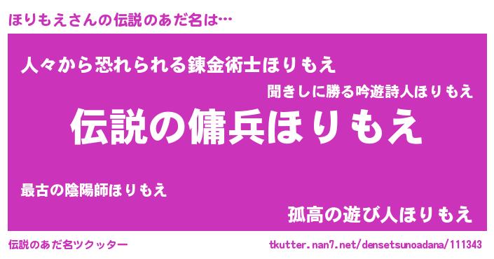 | 意味不明あだ名 | 『住所不定無職ほりもえ(59歳)』 |