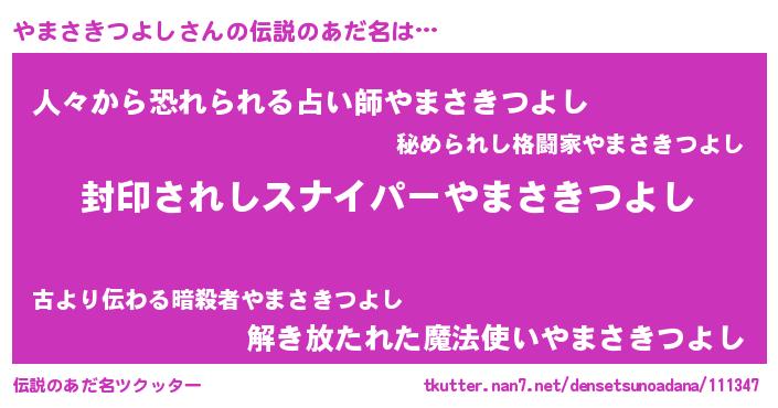 | 胡散臭い通販商品みたいなあだ名 | 『億万長者になれる霊験あらたかなお札…その名も「やまさきつよし」』 |