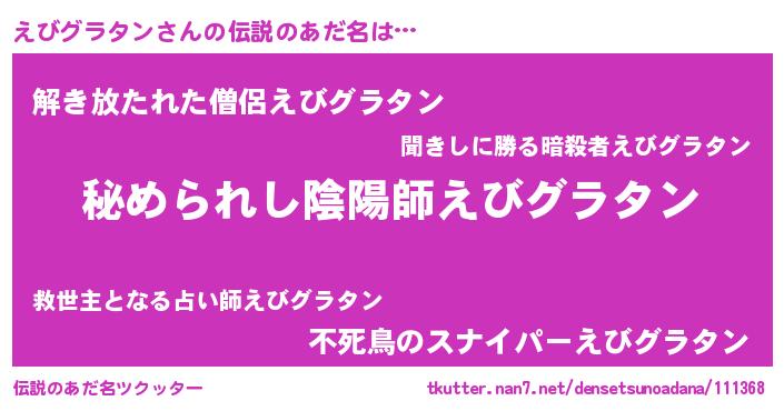 | 女子向けラノベタイトル風あだ名 | 『えびグラタンなんてお断りですっ。』 |