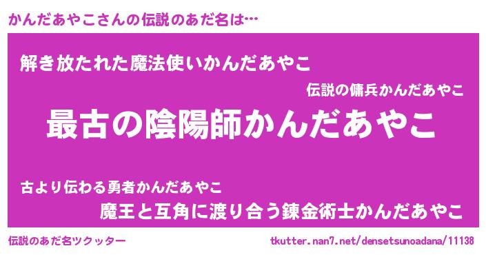 | 男性向けラノベタイトル風あだ名 | 『Re:かんだあやこから始める異世界生活』 |
