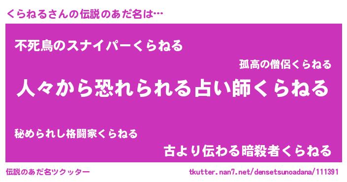 | 欧米人風あだ名 | 『ダニエルくらねる』『マイケルくらねる』 |