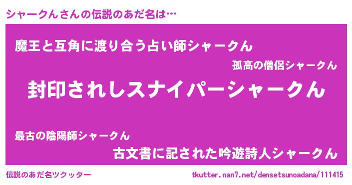 | 胡散臭い通販商品みたいなあだ名 | 『億万長者になれる霊験あらたかなお札…その名も「シャークん」』 |