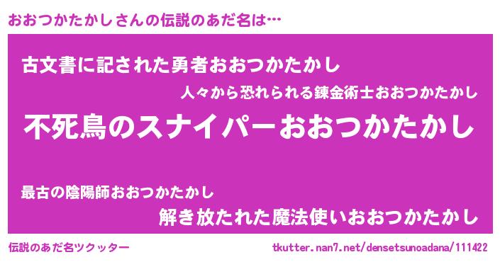| 胡散臭い通販商品みたいなあだ名 | 『モテモテ間違いなし霊験あらたかなお札…その名も「おおつかたかし」』 |