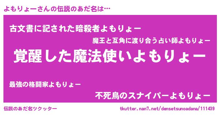 | 胡散臭い通販商品みたいなあだ名 | 『全米が絶賛したサプリメント…その名も「よもりょー」』 |
