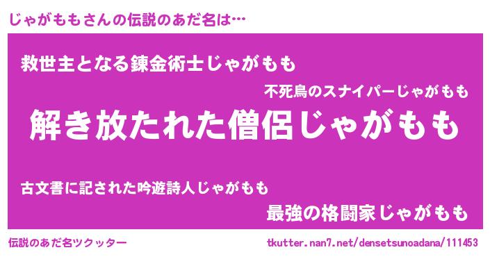 | 男性向けラノベタイトル風あだ名 | 『転生したらじゃがももだった件』 |