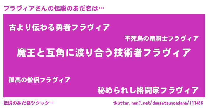 | ヘコむあだ名 | 『フラヴィア(笑)』『豆乳』『フラを』 |