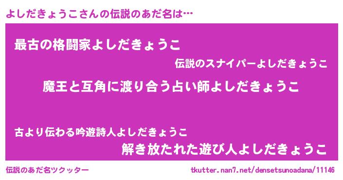 | 女子向けラノベタイトル風あだ名 | 『よしだきょうこアンティーク』 |