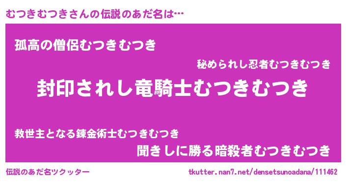 | ヒーロー風カッコイイあだ名 | 『スーパームツキムツキ』『黄金騎士ムツ』 |