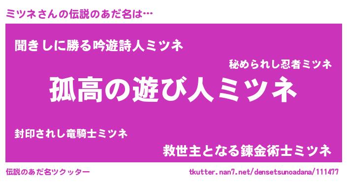 | 胡散臭い通販商品みたいなあだ名 | 『信頼と実績のペンダント…その名も「ミツネ」』 |