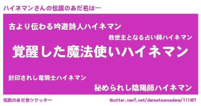| ヒーロー風カッコイイあだ名 | 『炎刃騎士ハイ』『ネオハイネマン』 |