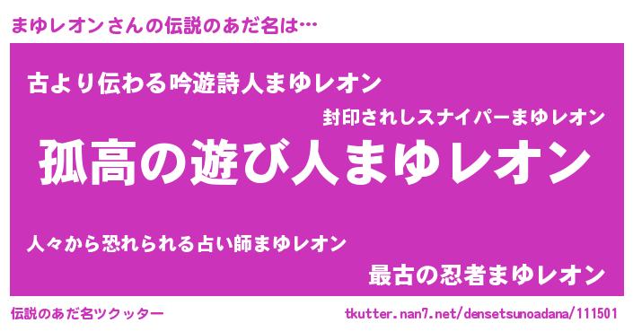 | ヘコむあだ名 | 『まゆっちょ』『まゆレオン(小並感)』 |