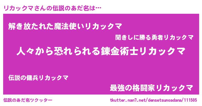 | ヒーロー風カッコイイあだ名 | 『正義の使者リカックマ』『仮面リカダー』 |