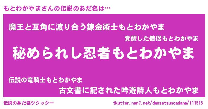 | ファンタジー風あだ名 | 『エターナルモトワカヤマー』 |