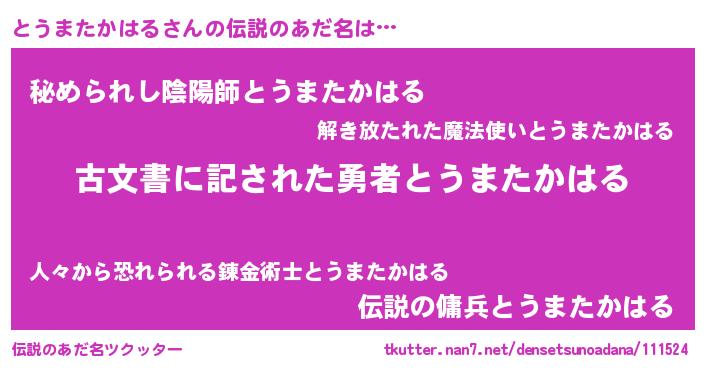 | 意味不明あだ名 | 『永久保存とうまたかはる』 |
