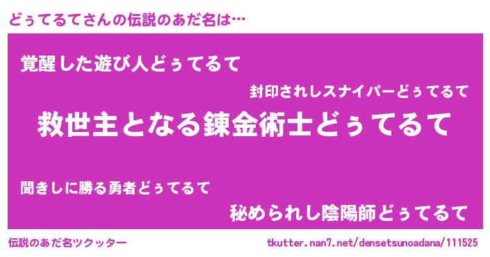 | 男性向けラノベタイトル風あだ名 | 『どぅてるてに滅ぼされるだけの簡単なお仕事です』 |