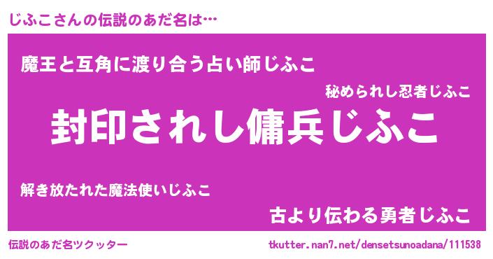 | ヘコむあだ名 | 『じふもー』『じふこ(笑)』 |