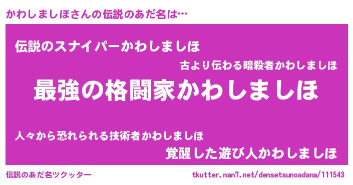 | ファンタジー風あだ名 | 『エターナルカワシマシホー』 |