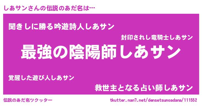 | 男性向けラノベタイトル風あだ名 | 『うちのしあサンが世界を掌握している!』 |