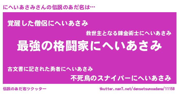 | 男性向けラノベタイトル風あだ名 | 『にへいあさみに滅ぼされるだけの簡単なお仕事です』 |
