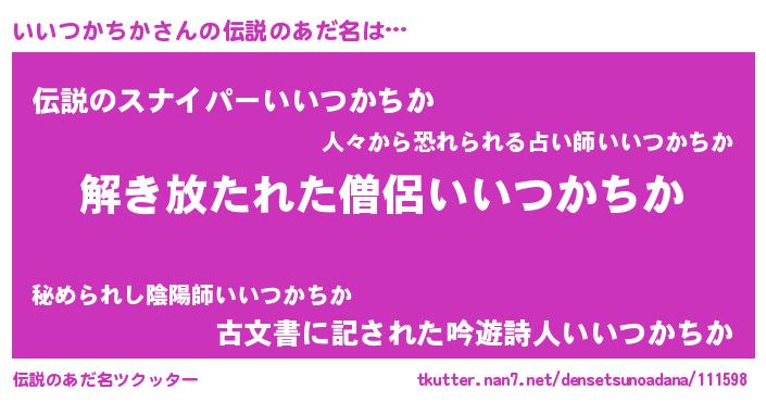 | 意味不明あだ名 | 『とにかく怪しいいいつかちか』 |