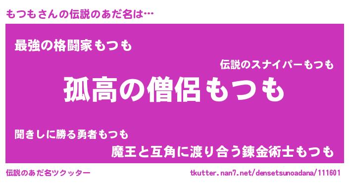 | ヒーロー風カッコイイあだ名 | 『仮面モツダー』『暗黒騎士モツ』 |