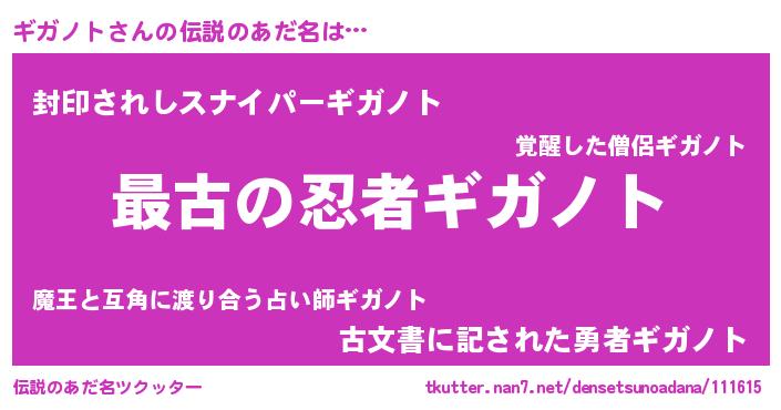 | 意味不明あだ名 | 『ギガノトフォーエバー』『自称ギガノト』 |