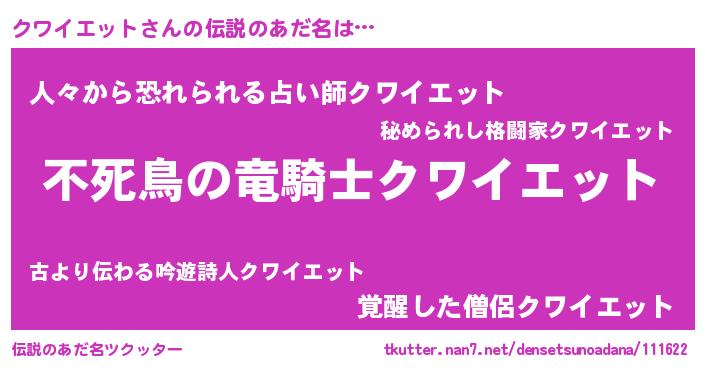 | ファンタジー風あだ名 | 『クワフェル』『クインクット』 |
