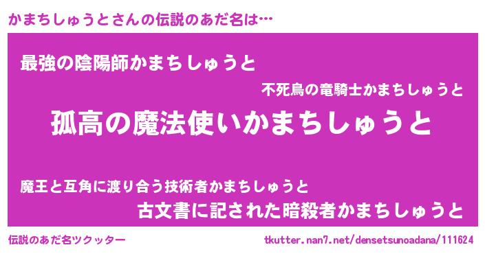 | ヒーロー風カッコイイあだ名 | 『暗黒騎士カマ』『ネオカマチシュウト』 |
