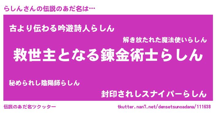 | 意味不明あだ名 | 『住所不定無職らしん(93歳)』 |
