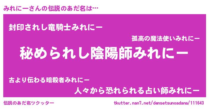 | ファンタジー風あだ名 | 『ゼミレトゥ』『エターナルミレニーー』 |