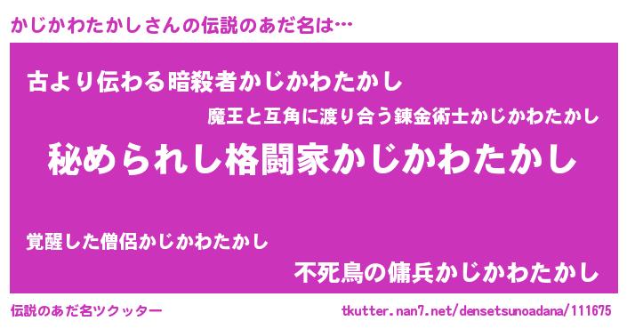 | 意味不明あだ名 | 『かじかわたかしフォーエバー』 |