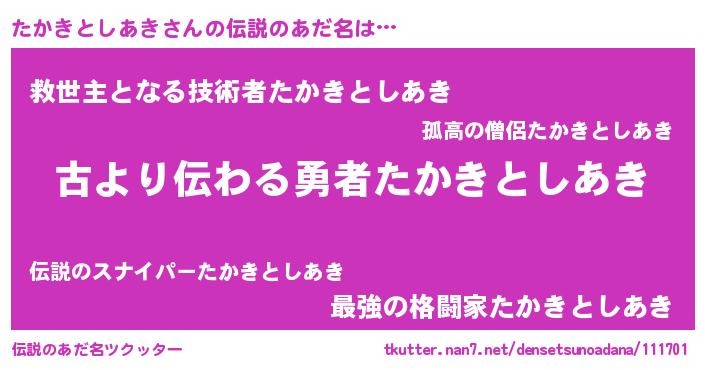 | 意味不明あだ名 | 『永久保存たかきとしあき』 |