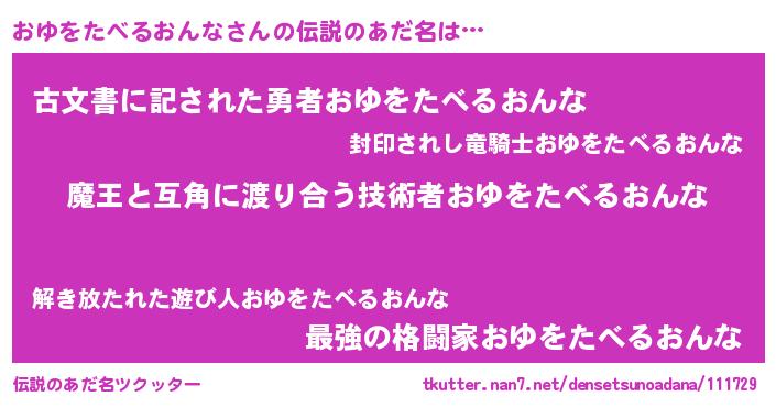 | ヒーロー風カッコイイあだ名 | 『友情の使者おゆをたべるおんな』 |