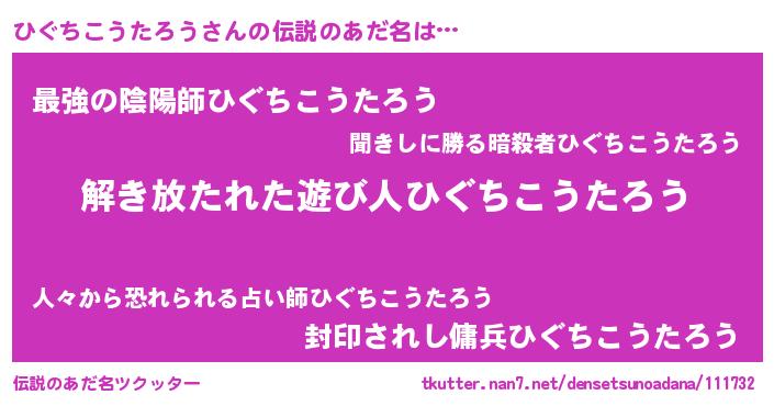 | 意味不明あだ名 | 『自称ひぐちこうたろう』 |
