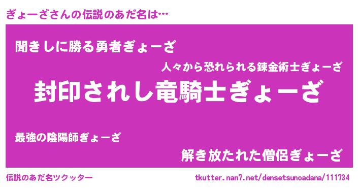 | 胡散臭い通販商品みたいなあだ名 | 『億万長者になれるブレスレット…その名も「ぎょーざ」』 |