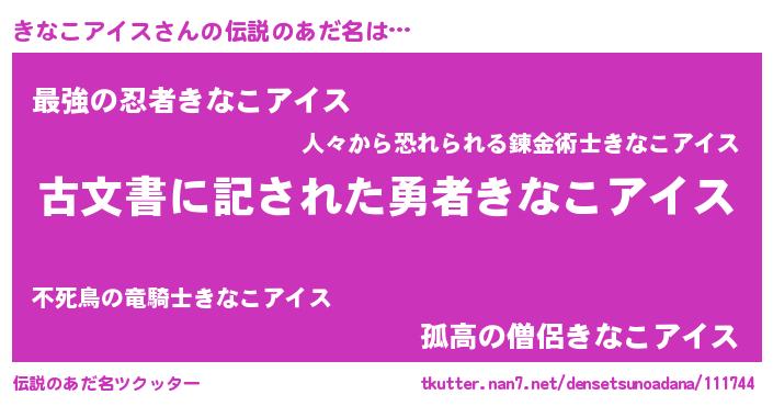 | ヒーロー風カッコイイあだ名 | 『ネオキナコアイス』『仮面キナダー』 |