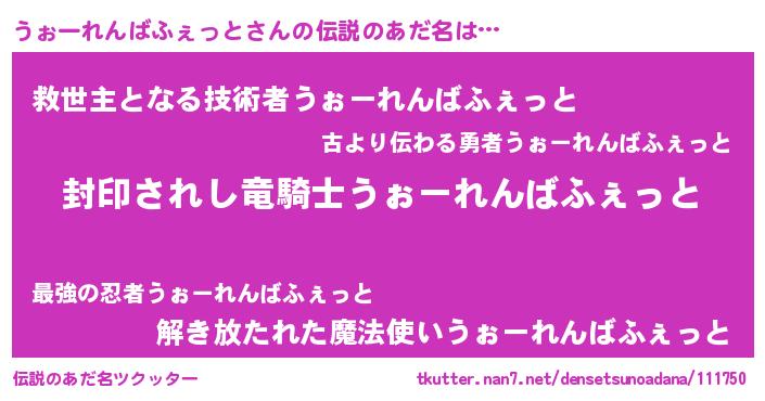 | ファンタジー風あだ名 | 『ウォフェル』『ヴァルウォーナ』 |