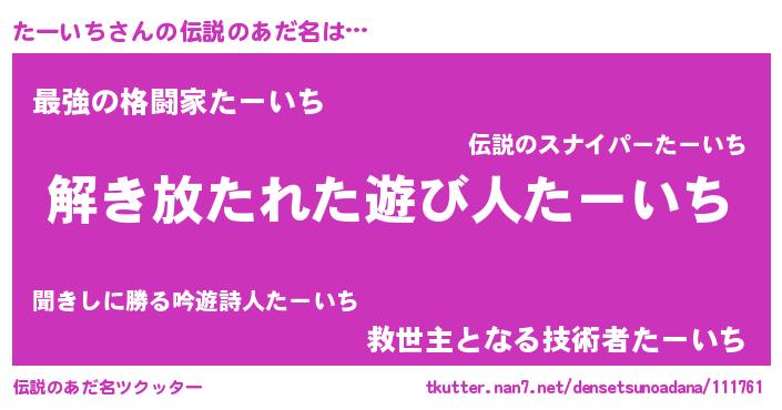 | ヒーロー風カッコイイあだ名 | 『魔戒騎士ター』『究極戦士ターイチ』 |