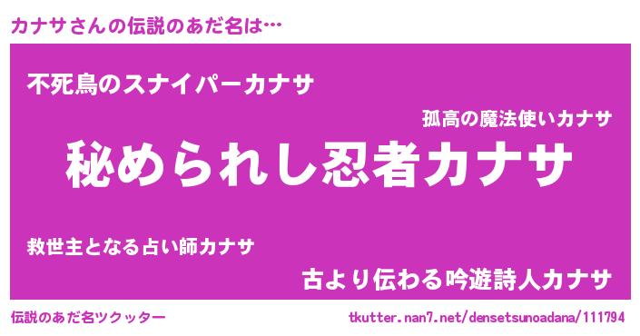 | ファンタジー風あだ名 | 『エターナルカナサー』『カークカナラー』 |