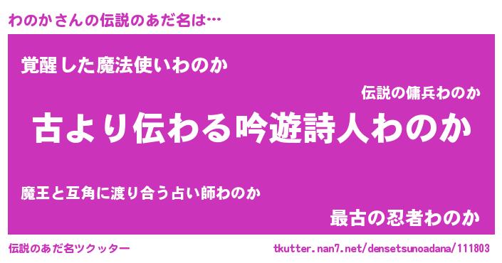 | ヘコむあだ名 | 『わのか(小並感)』『わのっぺ』 |