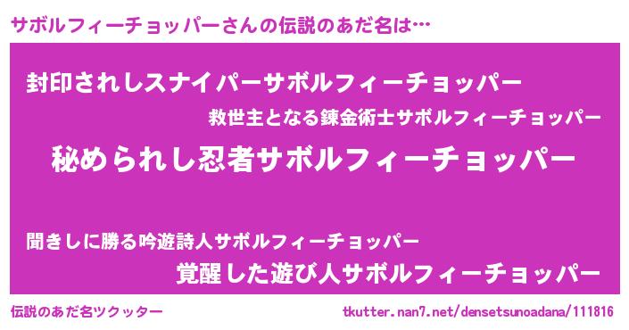 | ヒーロー風カッコイイあだ名 | 『ウルトラサボルフィーチョッパーマン』 |