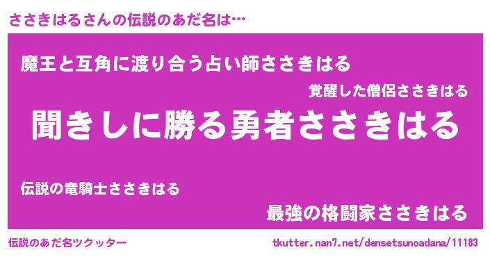 | 意味不明あだ名 | 『永久保存ささきはる』『自称ささきはる』 |