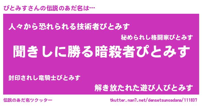 | 意味不明あだ名 | 『永久保存ぴとみす』『自称ぴとみす』 |