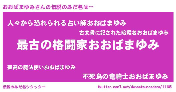 | 意味不明あだ名 | 『住所不定無職おおばまゆみ(10歳)』 |