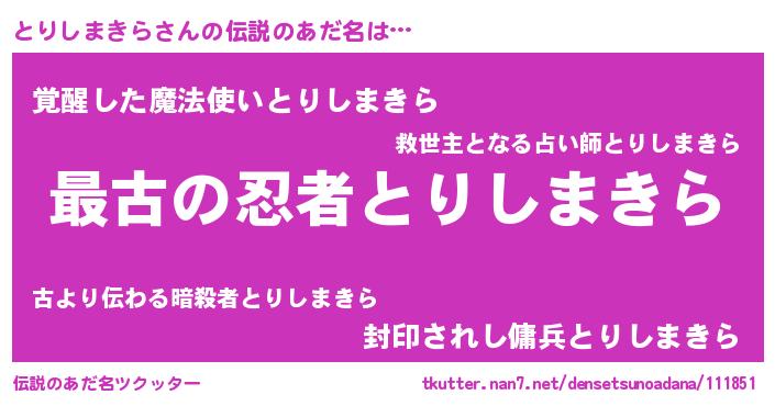 | ファンタジー風あだ名 | 『エターナルトリシマキラー』 |