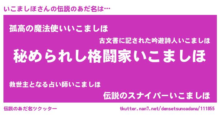 | 意味不明あだ名 | 『住所不定無職いこましほ(3歳)』 |