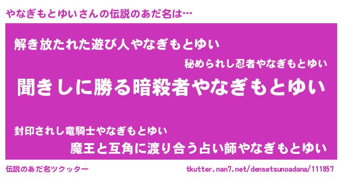 | 意味不明あだ名 | 『永久保存やなぎもとゆい』 |